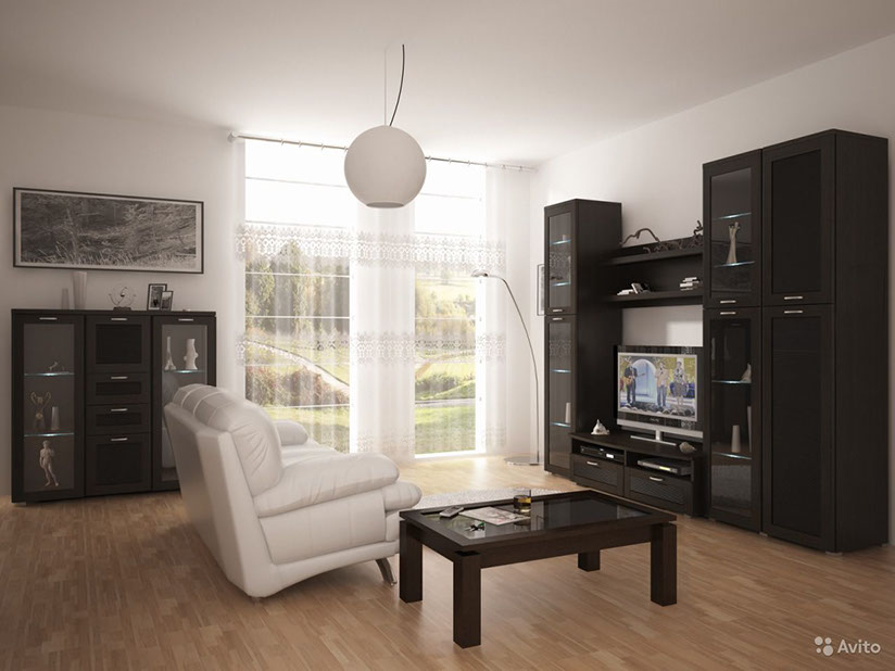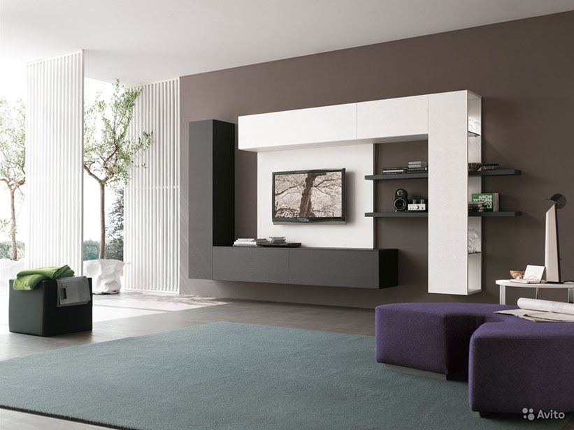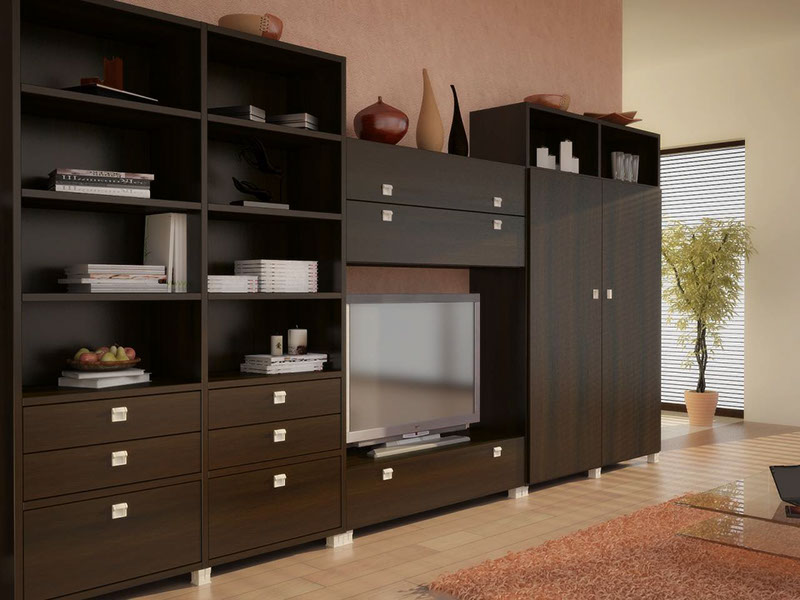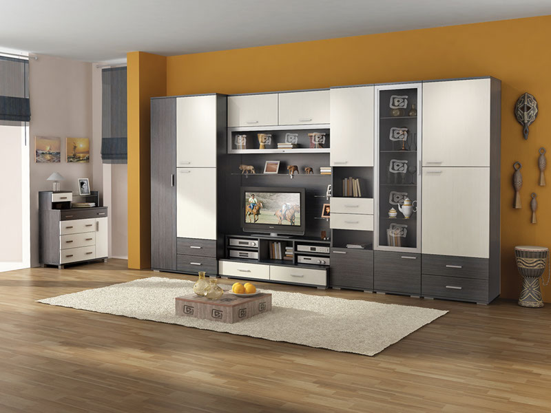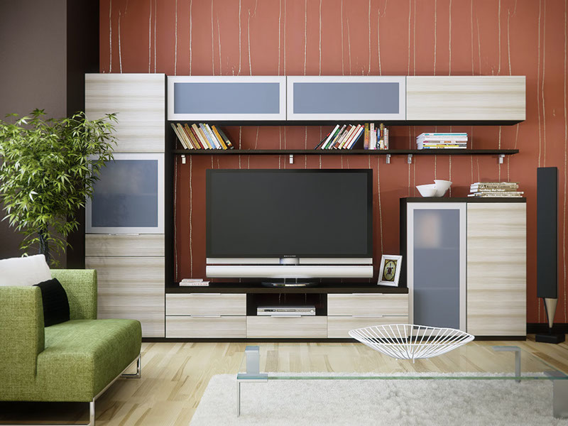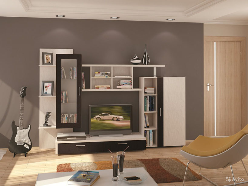 Гостиная это комната, в которой также как и в кухне, каждый день собирается вся семья. Здесь мы просто отдыхаем семьей, встречаем гостей, смотрим телевизор, играем в настольные игры и многое другое. Поэтому модульная стенка, в первую очередь, должна выглядеть стильно и ненавязчиво.